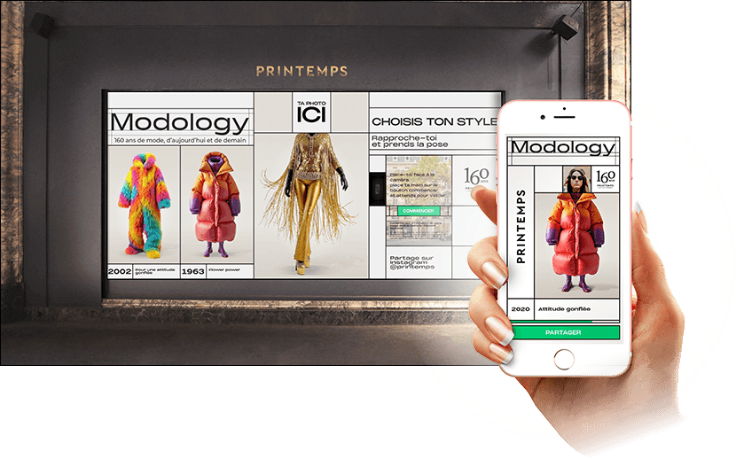 Presented in the exterior window of Printemps Haussmann in Paris, the MODOLOGY AI Photocall was developed as part of the “Modology” campaign celebrating fashion culture. Installed for one month and accessible directly from the street, the experience invited passersby to engage with the storefront and step into the creative universe of the campaign.